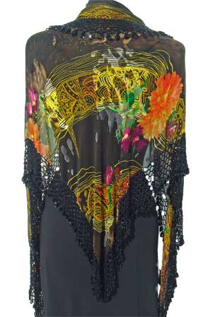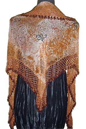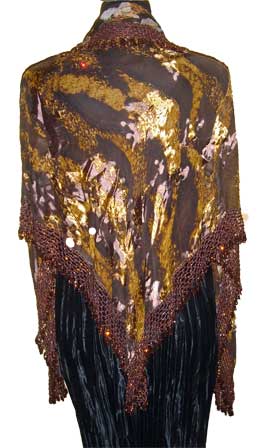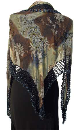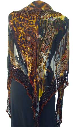 Shades of Gold and Carmel Italian Silk Print with Bronze Beads