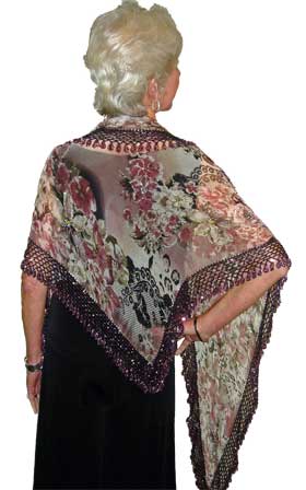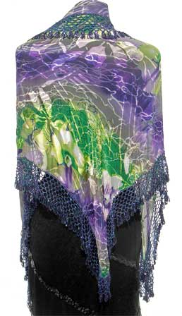 Purple , Pink and Blue Multi-Color Italian Silk Print with Purple Iris Beads