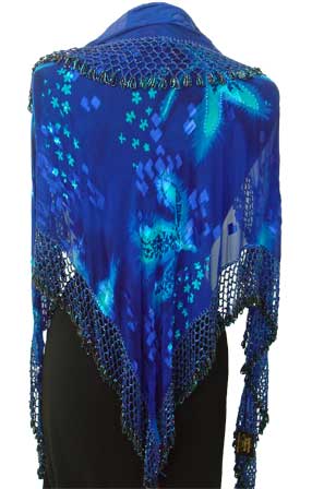 Multi-Colored Italian Silk Print with Blue Iris Beads